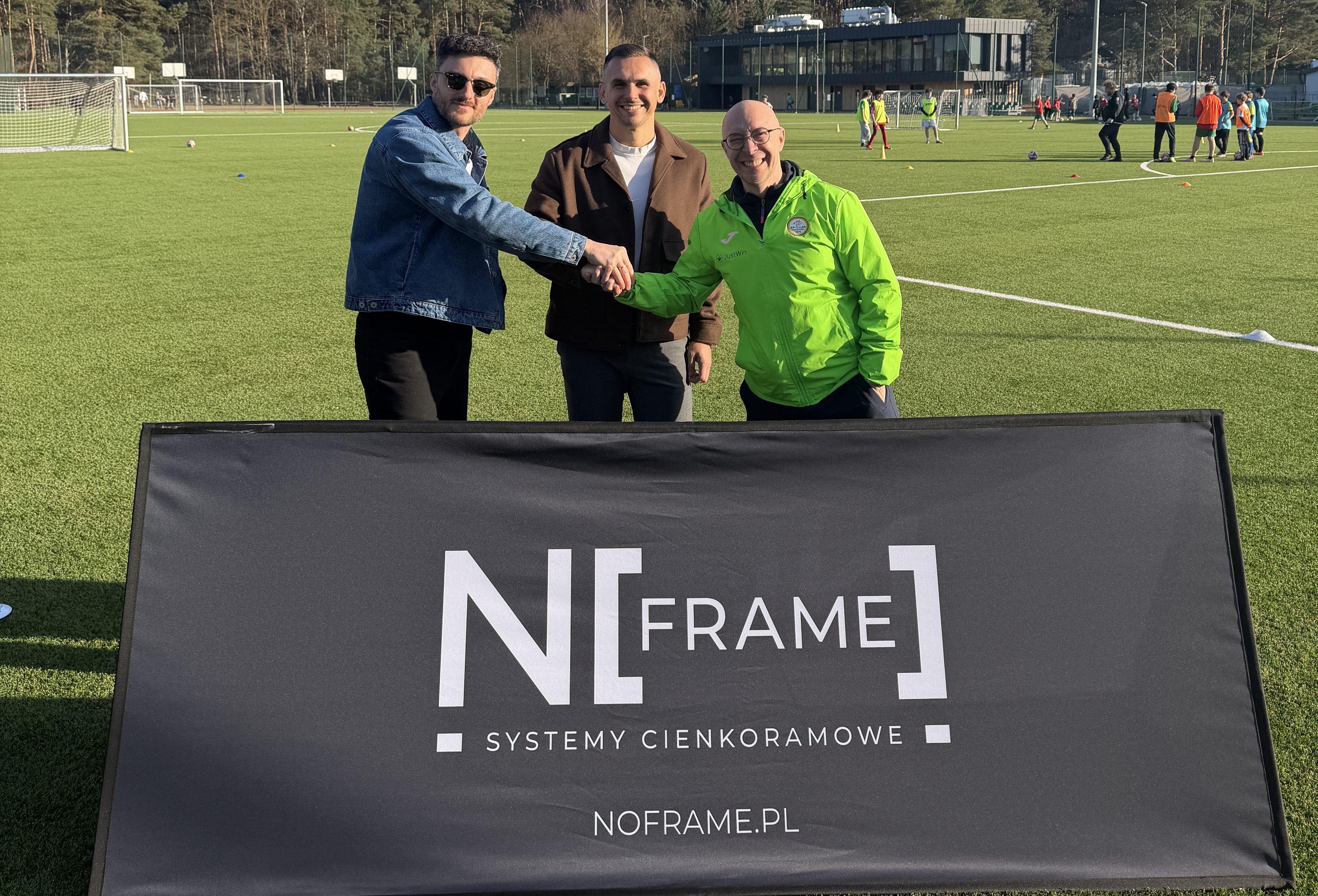 Za firmą No Frame stoją Michał i Patryk – pasjonaci piłki nożnej, którzy doskonale rozumieją rolę sportu w budowaniu lokalnej społeczności. Ich wsparcie to nie tylko wkład w rozwój infrastruktury i funkcjonowania klubu, ale również wyraz autentycznego zaangażowania w życie sportowe regionu.