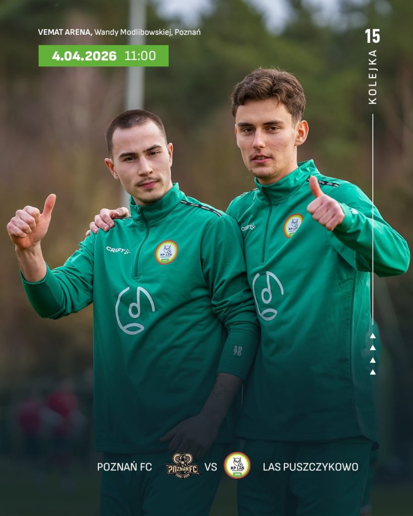 Już w najbliższą sobotę, 4 kwietnia o godzinie 11:00, drużyna Lasu Puszczykowo rozegra kolejne ligowe spotkanie. Tym razem zmierzymy się na wyjeździe z jednym z głównych kandydatów do awansu – zespołem Poznań FC. Mecz odbędzie się na Vemat Arena przy ulicy Wandy Modlibowskiej w Poznaniu.